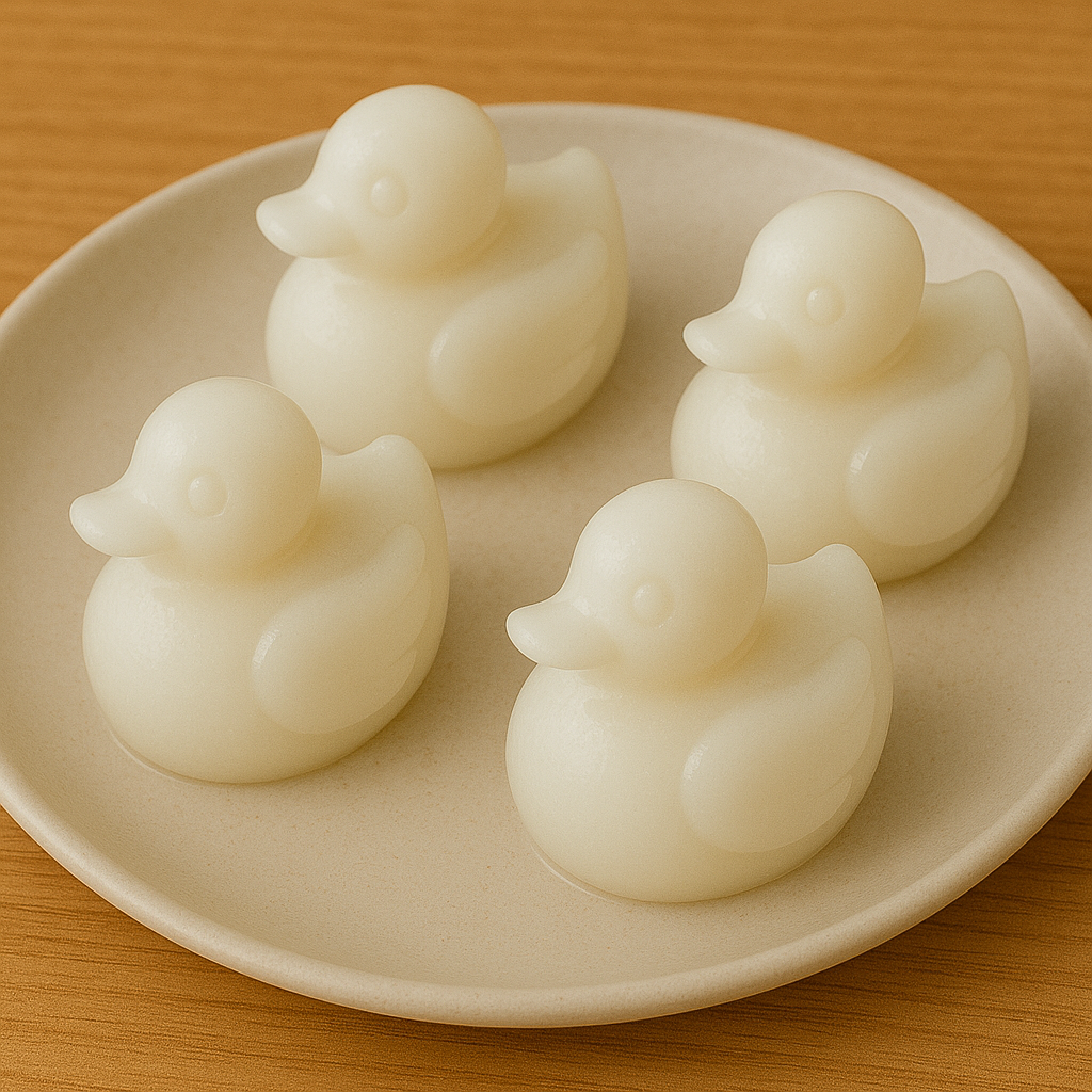“วุ้นเป็ด” ถือเป็นขนมไทยสุดน่ารักที่ใครเห็นก็ต้องยิ้ม ด้วยรูปทรงเป็ดตัวจิ๋วที่มาพร้อมความใส น่าทาน และรสชาติหวานหอมชื่นใจ โดยเฉพาะ วุ้นเป็ดกะทิ ที่เพิ่มความมันละมุนจากกะทิเข้ามาผสมผสานกับวุ้นใสธรรมดา ทำให้รสชาติมีมิติและน่าทานมากขึ้น เหมาะทั้งสำหรับทำแจกในงานบุญ งานเลี้ยง หรือทำขายเป็นอาชีพเสริม
