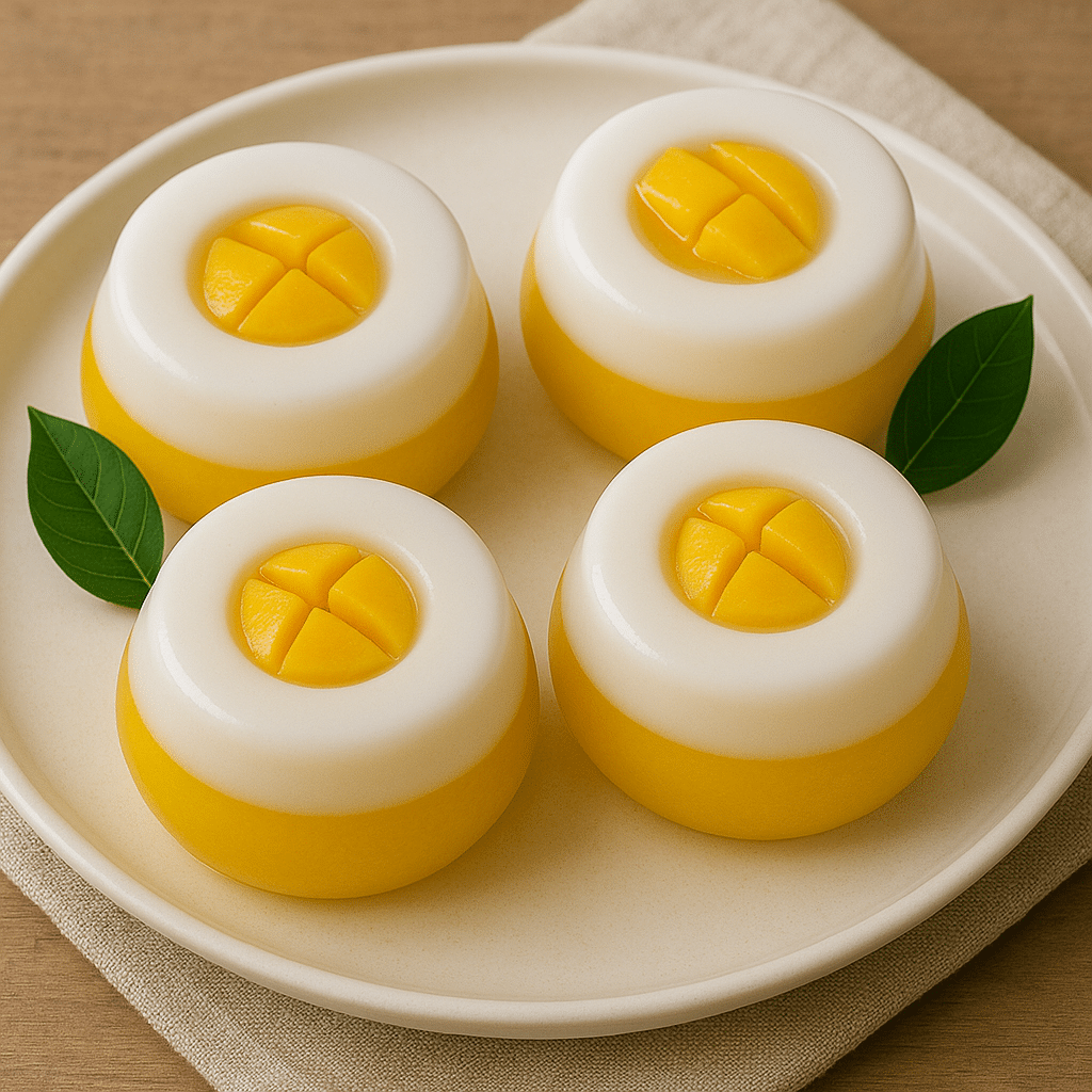 - พักให้เซ็ตตัว – ทิ้งไว้จนวุ้นเย็นและแข็งตัวดี จากนั้นนำเข้าตู้เย็นประมาณ 1–2 ชั่วโมงก่อนเสิร์ฟ จะได้วุ้นมะม่วงกะทิที่เย็นฉ่ำ หอมหวาน และน่าทานสุด ๆ